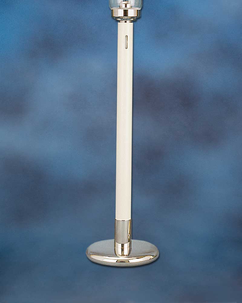 Standfuß aus Messing, vernickelt, 15 cm Ø, geeignet für Flammbeaux bis 32 mm Stangendurchmesser.