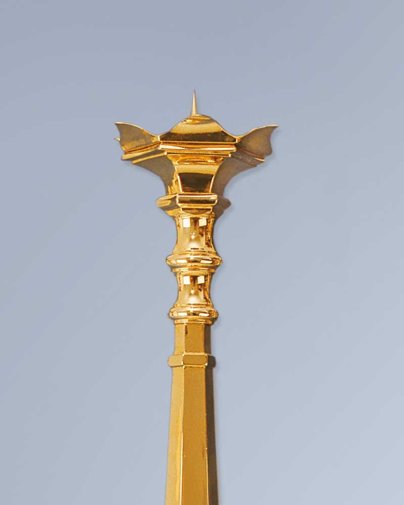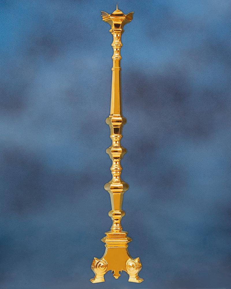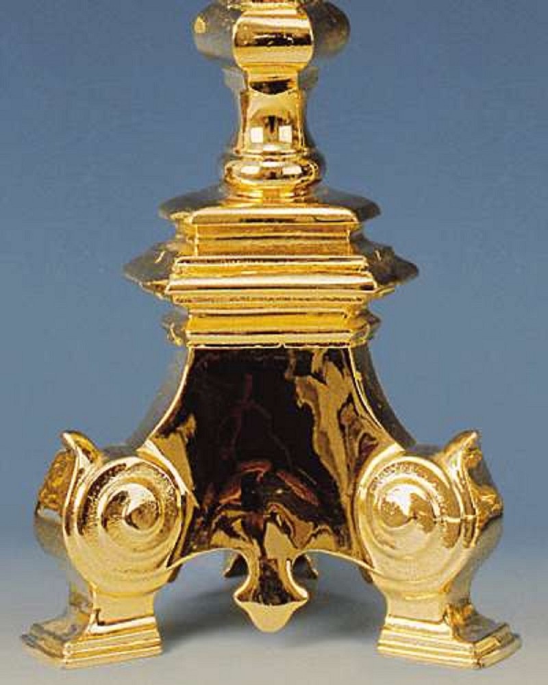 Standleuchter für Osterkerzen, in gotischer Marnier, 120 cm hoch, solide Messingausführung gegossen und vergoldet.