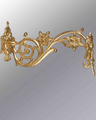 Wandarm in barocker Form, passend für Ewiglichtampeln, mit Ausladung 26,5 cm. Solide Messingausführung mit vergoldeter Oberfläche.
