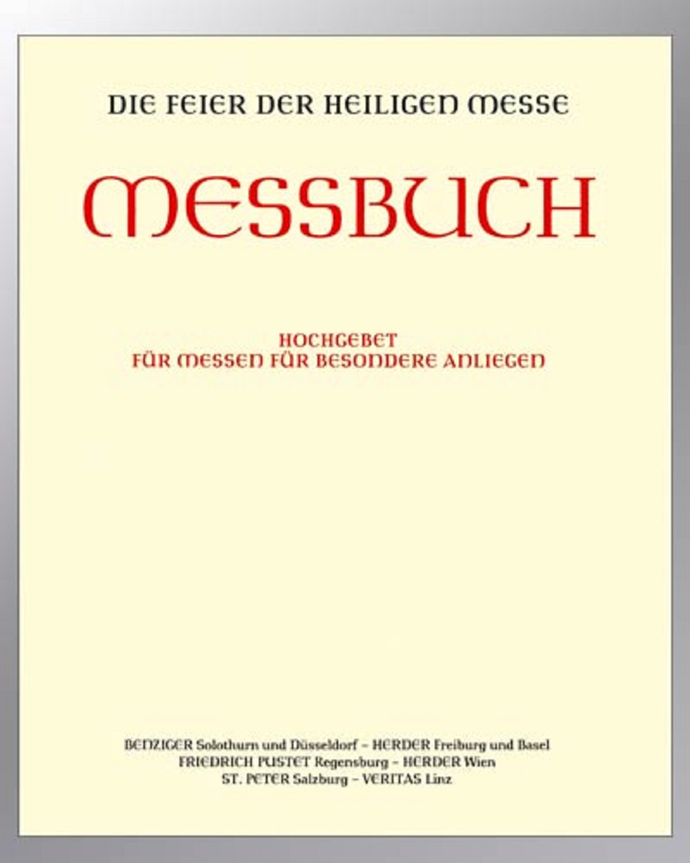 Hochgebet für Messen für besondere Anliegen. Herausgegeben im Auftrag der Bischöfe Deutschlands, Österreich und der Schweiz HB, VG, Altarausgabe. Für die Bistümer des deutschen Sprachgebiets. Authentische Ausgabe für den liturgischen Gebrauch. 80 Seiten, geheftet.