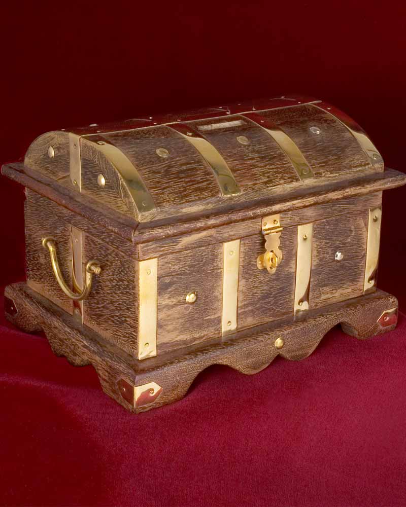 Geld-Kassette aus Antikholz mit rustikalen Beschlägen 20,5 x 14,5 x 15 cm. Deckel mit Einwurfschlitz und Schließvorrichtung für Vorhängeschloss, gut als Opferbüchse für Sternsinger geeignet.