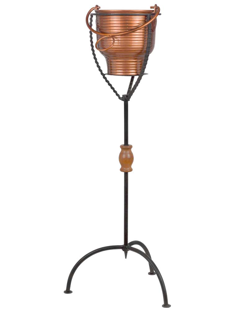 Dieser Weihwasserständer mit Kessel ist 80 cm hoch und verfügt über eine verkupferte Oberfläche. Die stabile Metallausführung gewährleistet Standfestigkeit und Langlebigkeit im Kirchenraum oder Eingangsbereich. Der Kessel ist abnehmbar und ermöglicht eine hygienische Reinigung sowie das einfache Nachfüllen von Weihwasser. Durch das schlichte, funktionale Design fügt sich der Ständer unauffällig in verschiedene liturgische Kontexte ein. Die verkupferte Oberfläche bietet einen warmen Metallton und unterstützt eine würdige Gesamtwirkung. Ideal geeignet für den Einsatz in Kirchen, Kapellen oder sakralen Nebenräumen.