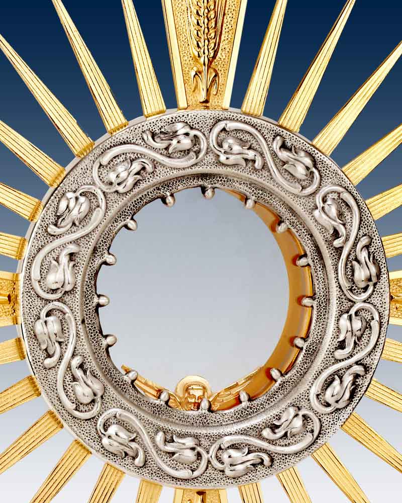 Monstanz mit vier roten Glassteinen