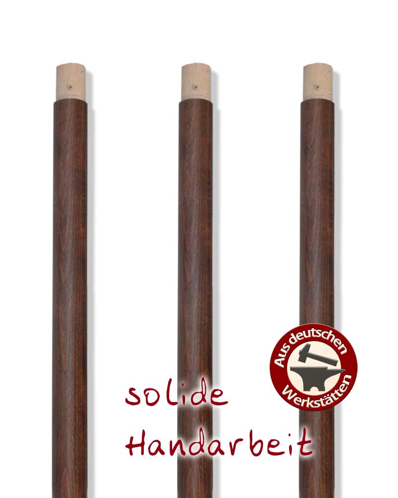 Baldachingestänge mit Bohrungen und Abfräsungen für Abschlussknöpfe, dunkelbraun gebeizt. 4 Tragestangen 2,4 m lang, 2 Querstangen 2,35 m lang, 3,5 cm Durchmesser