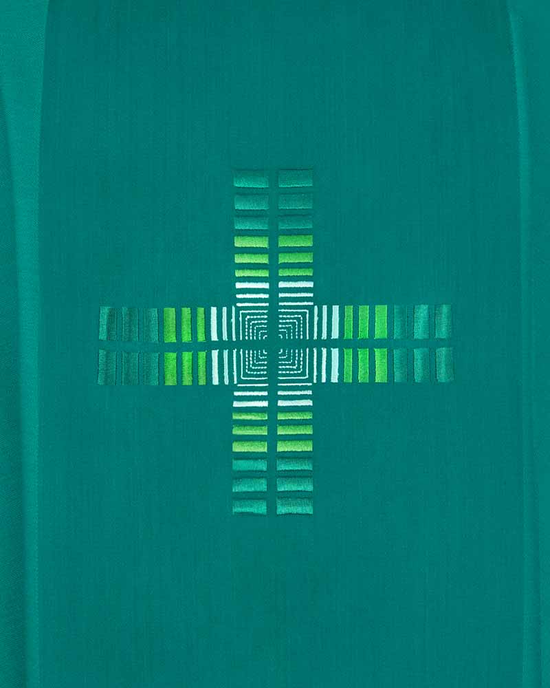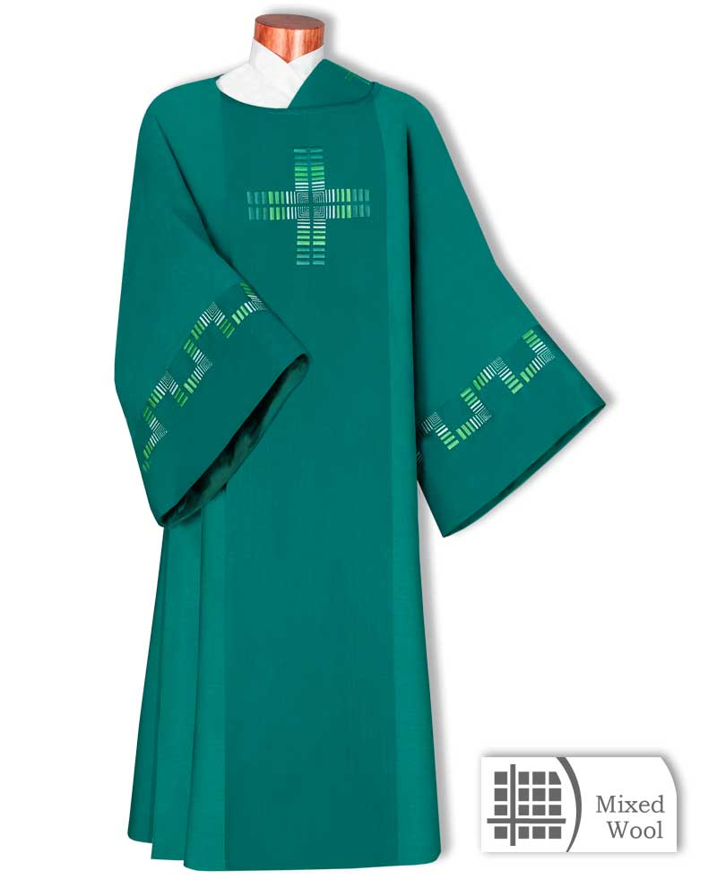 Dalmatik grün, gefüttert, Kreuzsymbol gestickt