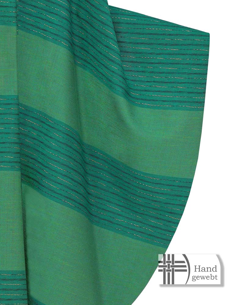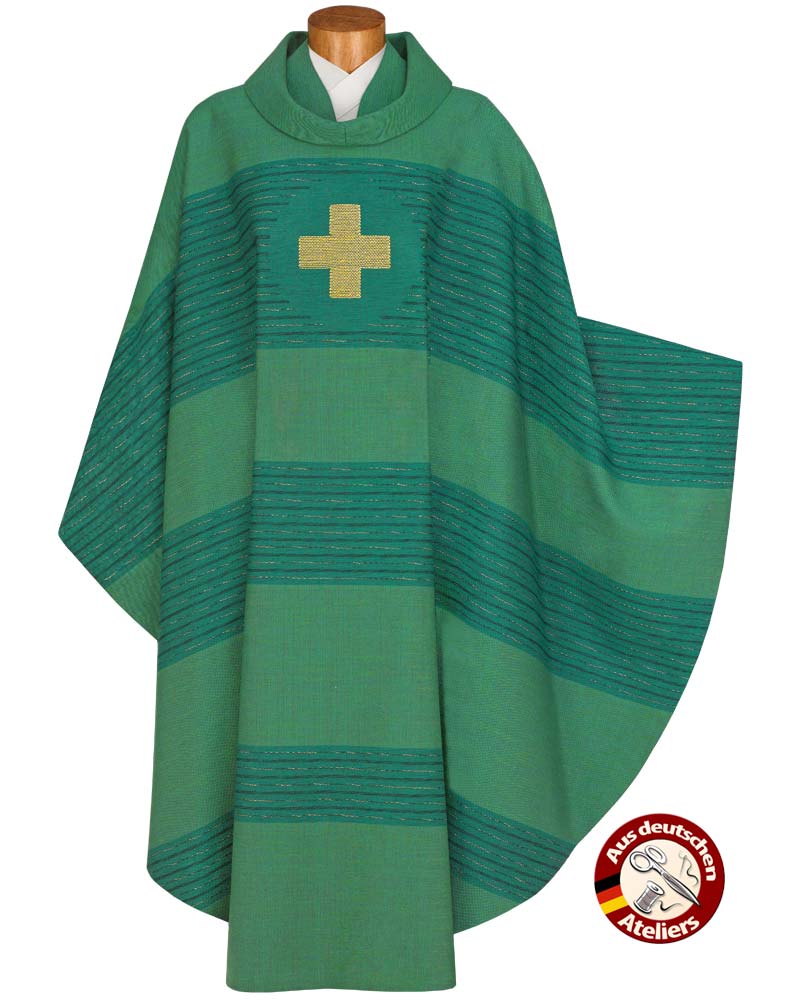 Kasel aus Handwebstoff grün mit Goldreuz, Innenstola