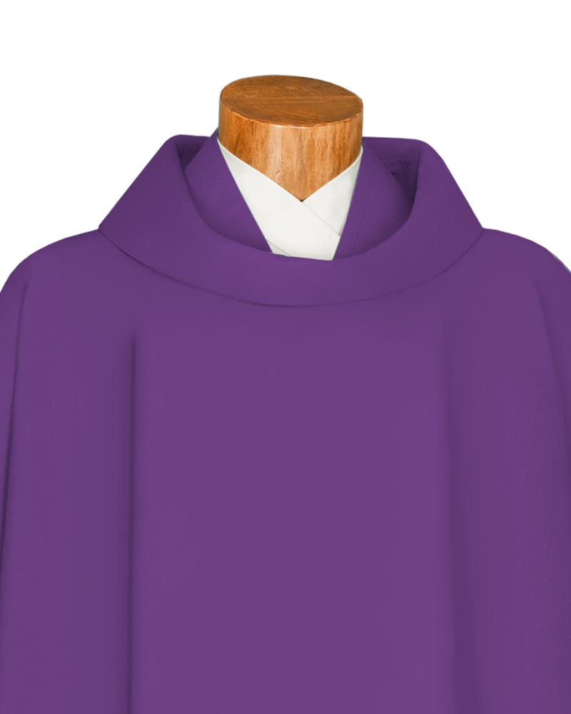 Diese violette Kasel mit Schalkragen eignet sich für die liturgische Verwendung in der Advents- und Fastenzeit. Sie misst 130 x 150 cm und wird inklusive farblich abgestimmter Innenstola geliefert. Das schlichte Design wird durch dezent gestickte Kreuze aufgewertet, die eine klare symbolische Aussage transportieren. Gefertigt ist das Parament aus einem robusten Mischgewebe aus Polyester und Baumwolle, das pflegeleicht und formbeständig ist. Die Kasel verbindet Funktionalität mit liturgischer Aussagekraft und bietet durch ihre klassische Schnittführung und das reduzierte Dekor eine zurückhaltende, würdige Ausstrahlung für den täglichen Einsatz im Gottesdienst.
