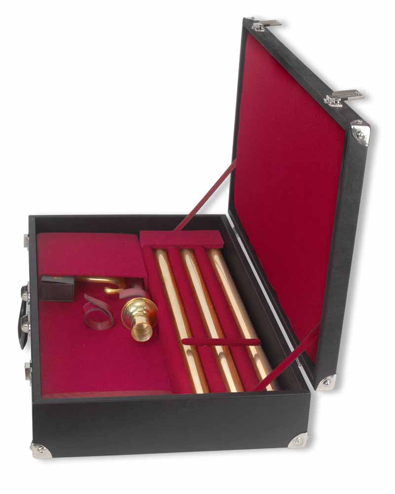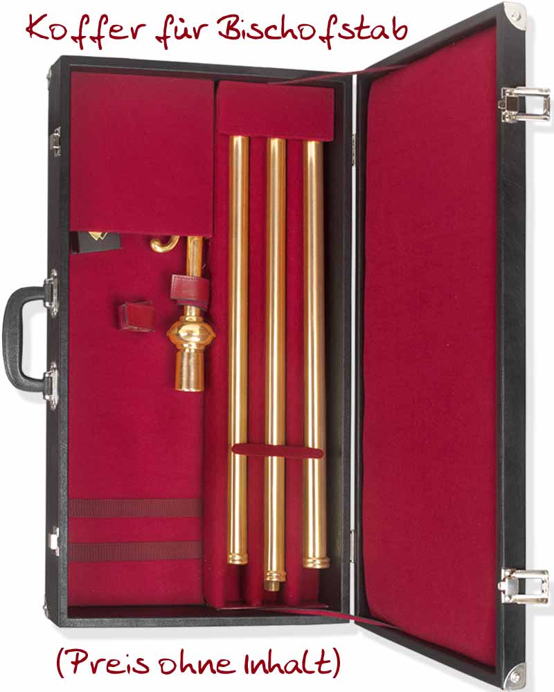 Koffer aus Kunstleder mit roter Samteinteilung, für Nikolausstab und Zubehör, 64 x 36 x 11 cm. Praktisch für die fachgerechte Aufbewahrung eines teilbaren Metallstabes und einem Abschluss für Bischofstäbe.