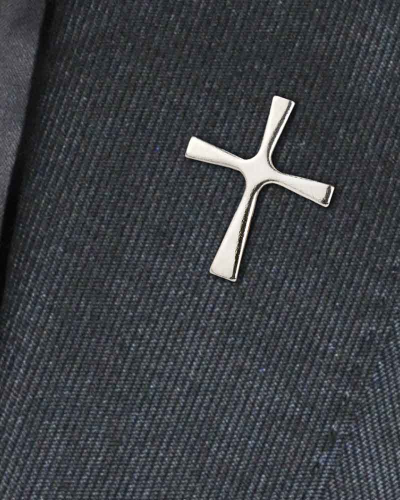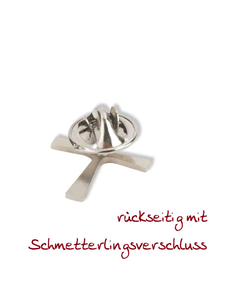 Anstecknadel Kreuz vernickelt, mit Verschluß