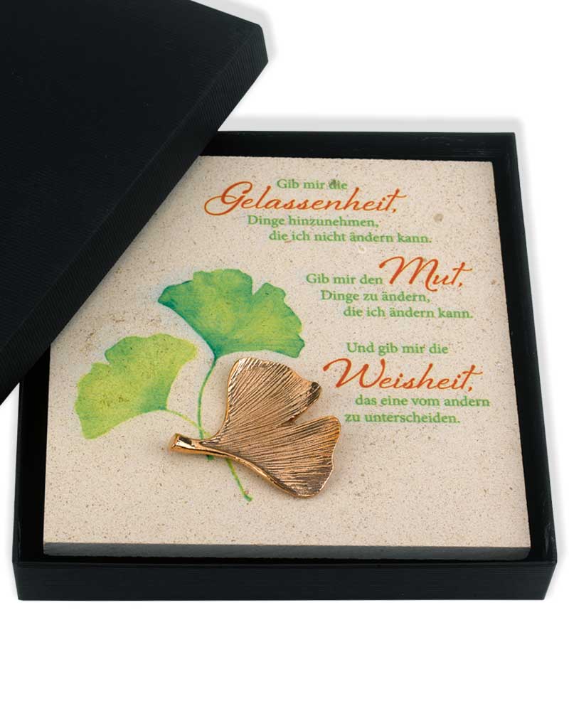 Natursteinplakette 14,5 cm Gelassenheit, Mut, Weissheit