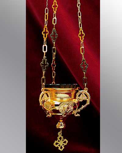 Ikonenampel mit Glas, Engelsköpfchen, vergoldet