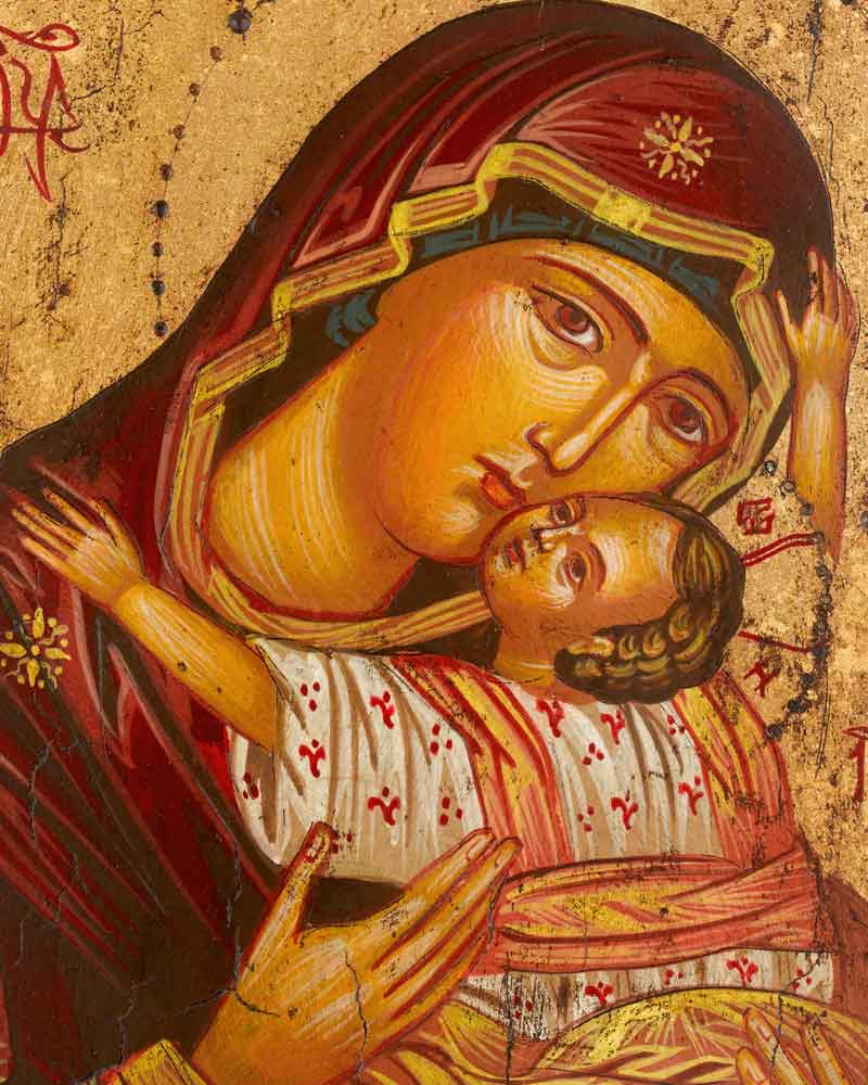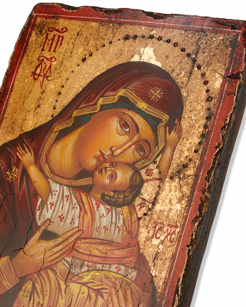 Preview: Madonna Glykophilousa antik handgemalt 14 x 18 cm