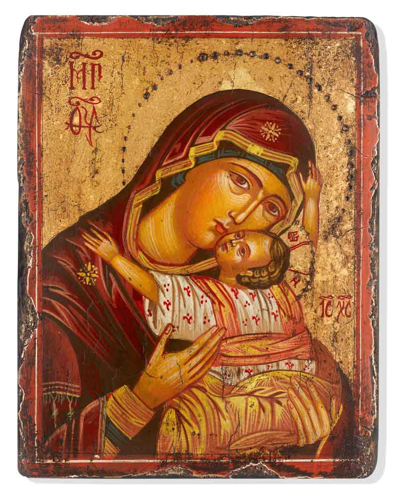 Madonna Glykophilousa antik handgemalt 14 x 18 cm