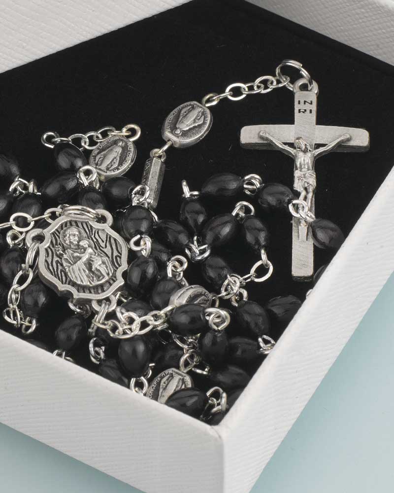 Preview: Ghirelli Rosenkranz Hl. Josef schwarze Perlen 56 cm lang