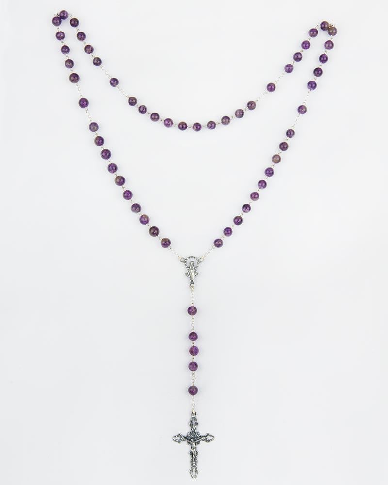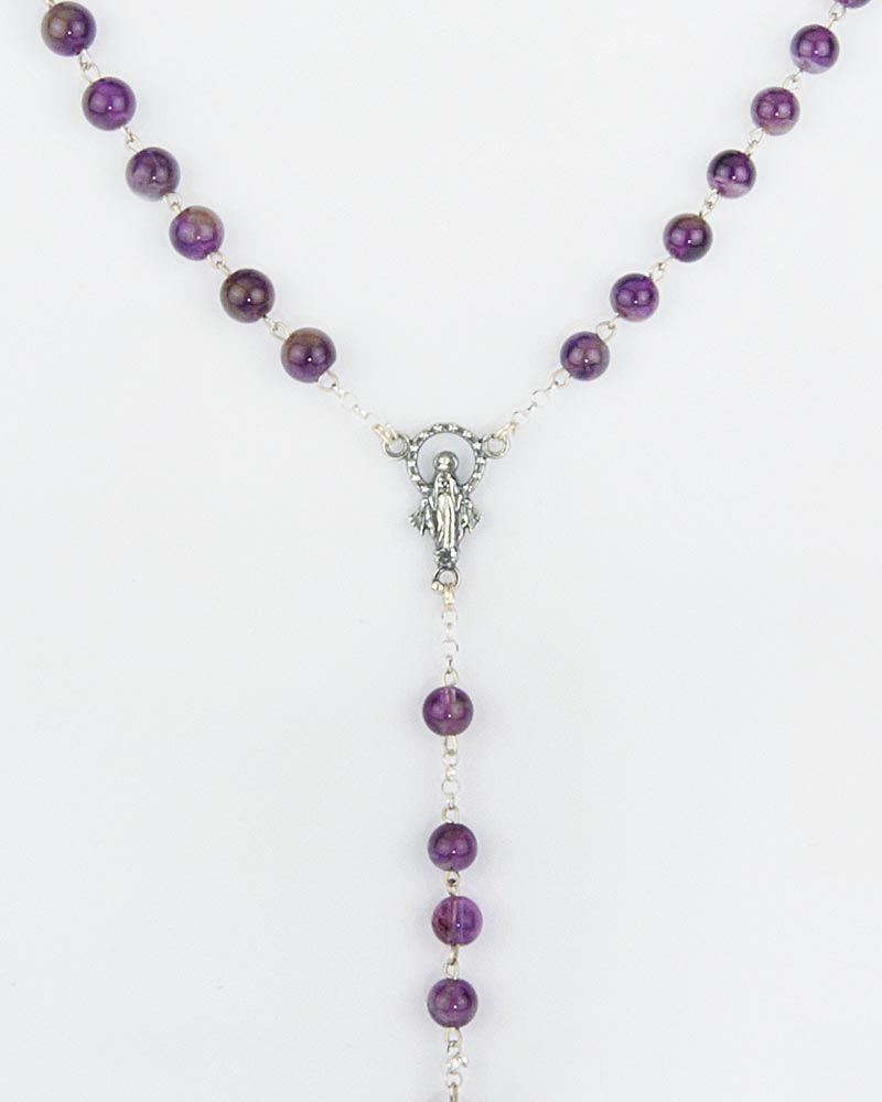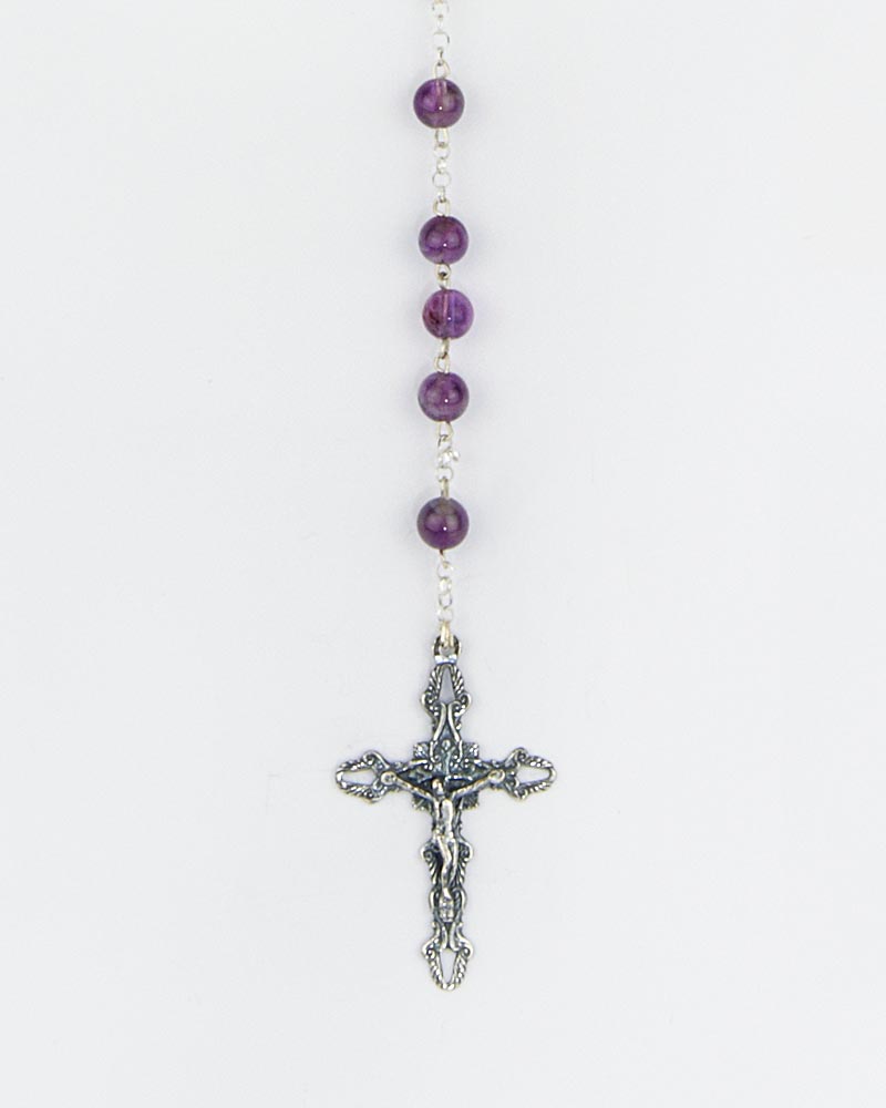 Rosenkranz Amethyst 0,6 cm Sterling Silber gekettelt