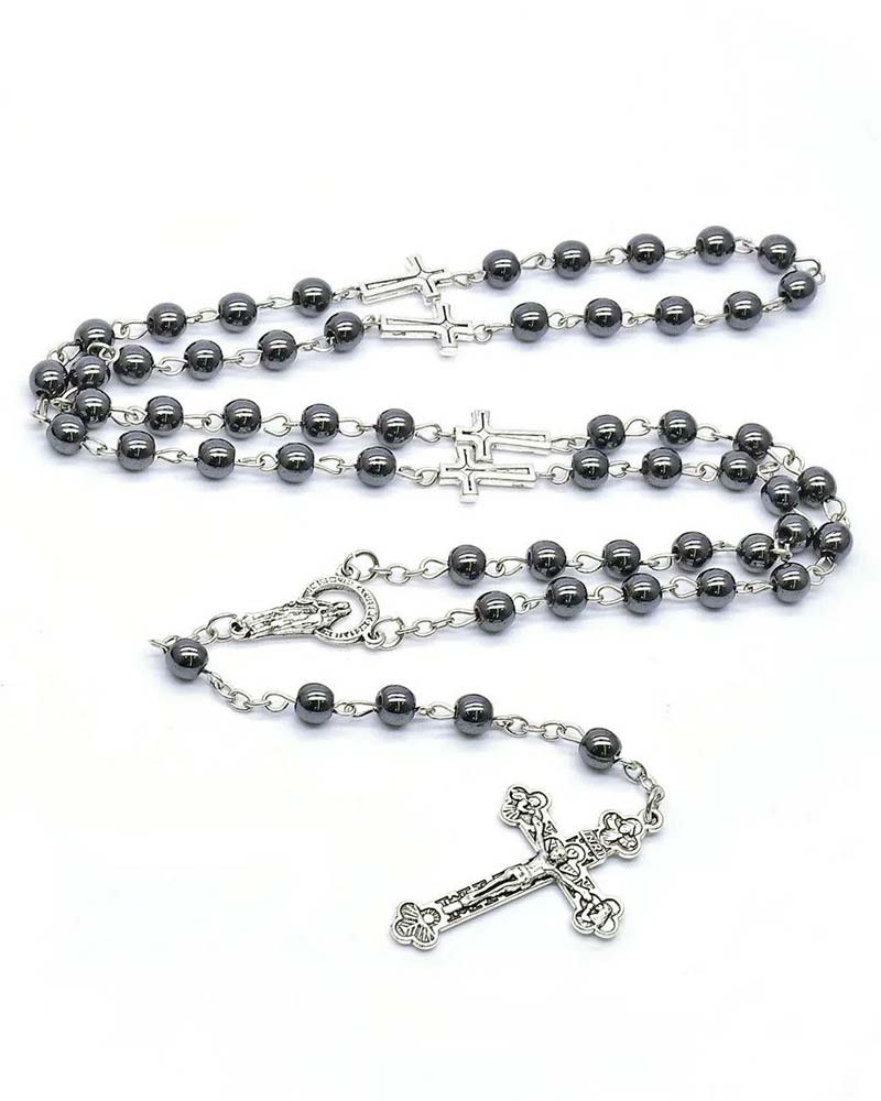 Rosenkranz Hämatit 6 mm Ø gekettelt, 53 cm lang
