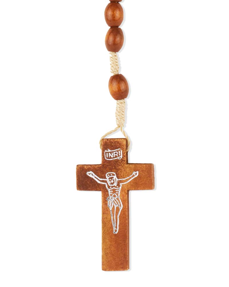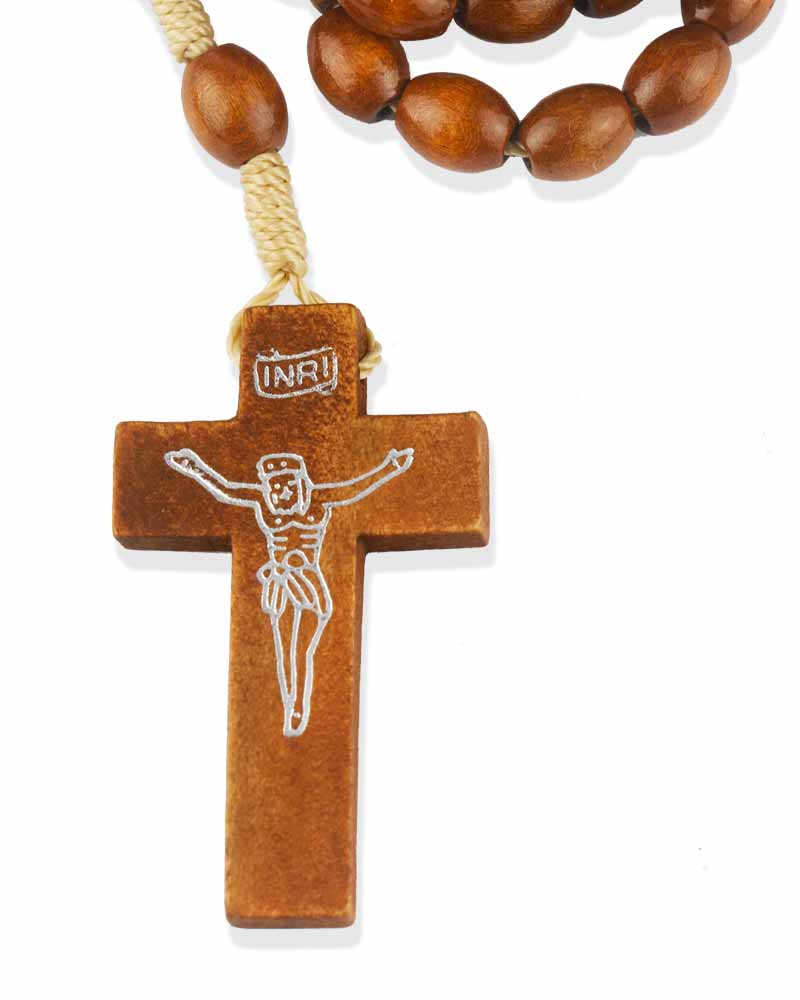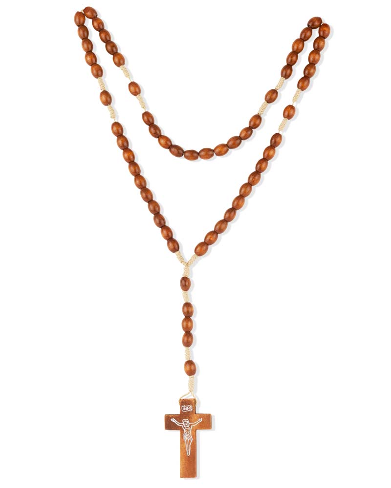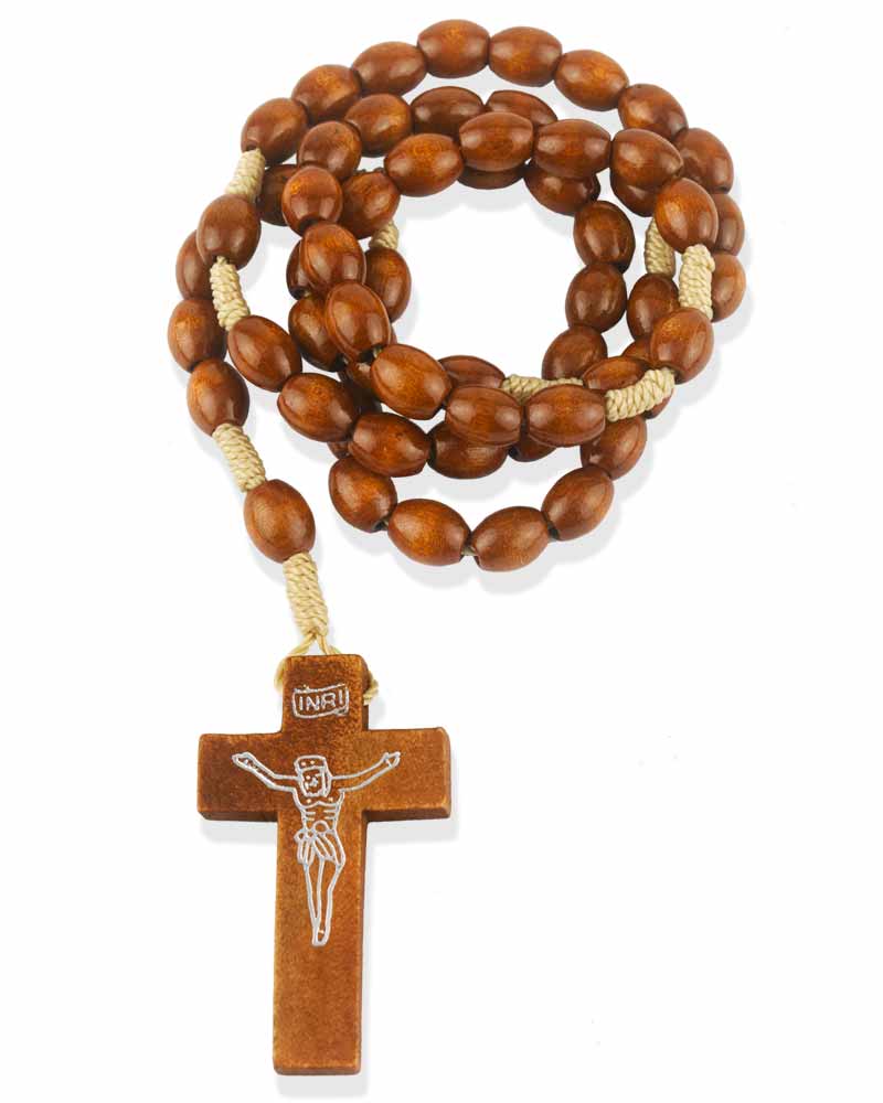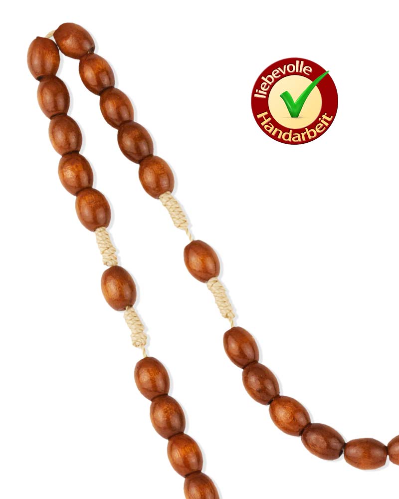 Rosenkranz Holz braun mit Schnur geknüpft 8 mm Ø ovale Perlen, 37 cm lang