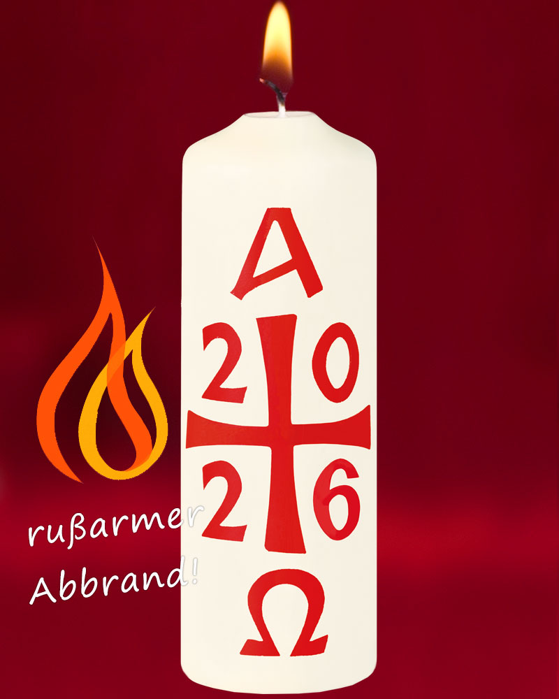 Osterkerze mit Jahreszahl, rot/gold bedruckt, 150 x 50 mm Tischosterkerzen, 12 Stück im Karton.
