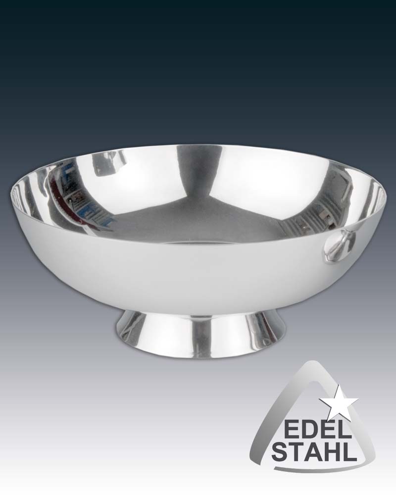Lavabogarnitur aus Edelstahl, Kanne 11 cm hoch, Wasserschale 16 cm Ø, 6,5 cm hoch.