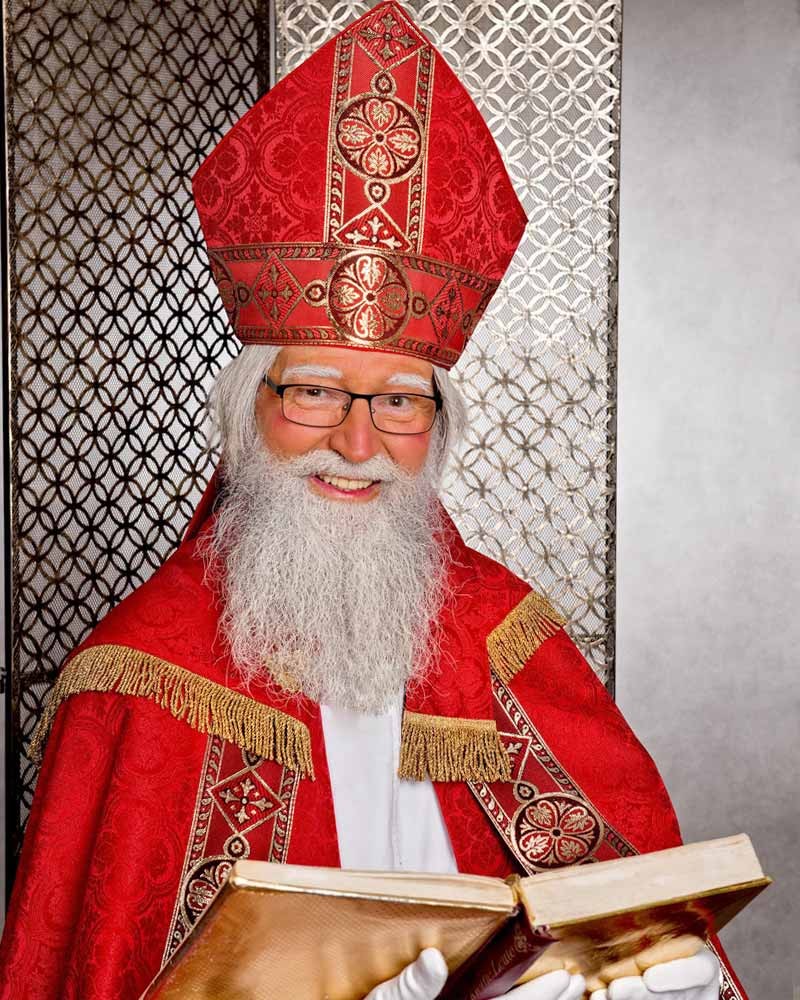 Mitra Als Zeichen des Bischofsamtes trägt der Nikolaus als Würdezeichen und als Kopfbedeckung eine Mitra. So wie der Hirtenstab und das Brustkreuz, zählt auch die Mitra zu den heiligen Insignien des Bischofes. Auch heute noch findet sie während der Heiligen Messfeier und Liturgie ihre Verwendung. Bei der Bischofsweihe wird die Mitra zum ersten mal aufgezogen. Sie soll ihrem Träger in seinem Amt symbolisch als "Helm der Stärke und des Heiles" dienen.